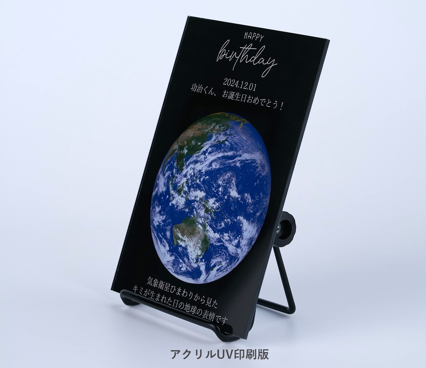 重厚感あるアクリルに直接UV印刷し、鮮やかな地球とメッセージをそのまま刻みます。